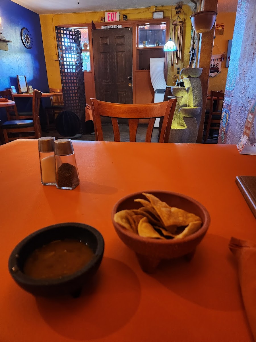 Hidden gem, small artistic and quaint. The food was amazing, especially the Casa Sauce. We tried the Chimichangas and the Pork Enchiladas. There were 3 Enchiladas and each had a different delicious sauce. The chips were homemade and the salsa was like nothing I've had before, sweet a little but with just the right amount of chili's and spice. If you're looking for a local family run small restaurant that has local flavors and a quaint artsy atmosphere this is it. Very close to freeway too.